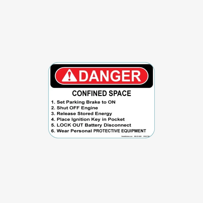 5 x 7″ Danger Confined Space Decal. As with all of our products, this 5 x 7″ Danger Confined Space Decal screen printed on 4 mil vinyl and is extremely outdoor durable. 100 percent satisfaction guaranteed!