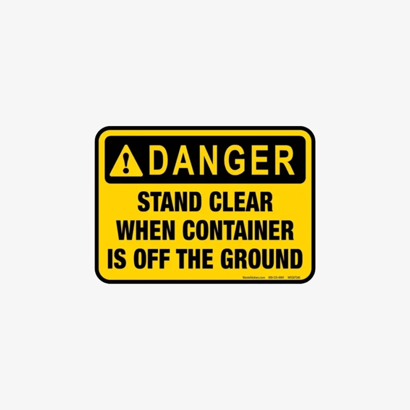 5 x 7″ Danger Stand Clear When Container Is Off The Ground Decal.