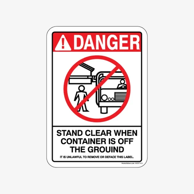 Danger Stand Clear When Container Is Off The Ground. It Is Unlawful To Remove Or Deface This Label Sticker Decal.