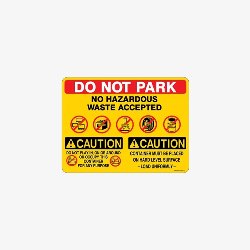 Multi Message Container Decal. Screen Printed Medium Yellow, Fire Red, and Black on .004 Mil White Vinyl with an Extremely Aggressive Adhesive.