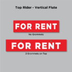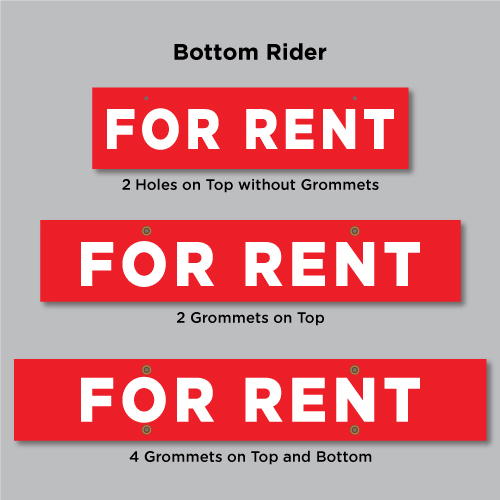 Eye-catching white and red FOR RENT Riders are perfect to highlight real estate listings for rent. The product is reusable, easy to install, fade-resistant, weatherproof, and cost-effective. We offer three popular sizes and two riding style options. Shop at wholesale prices!