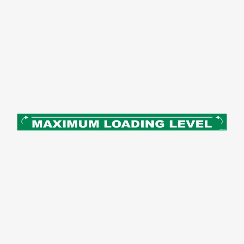Maximum Loading Level. Green background with White copy. Screen Printed Maximum Loading Level Decal.
