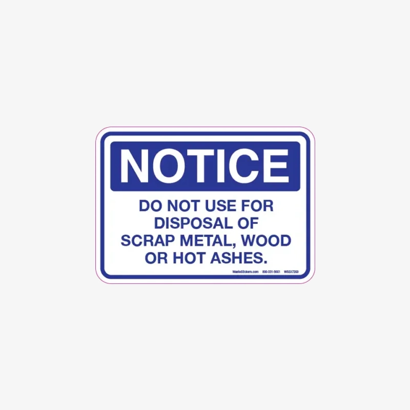 Notice Do Not Use For Disposal Of Scrap Metal, Wood Or Hot Ashes Decal
