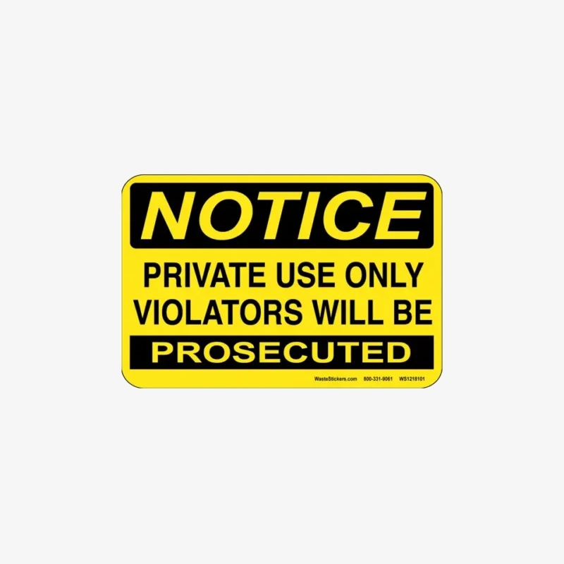 12 x 18″ Notice Private Use Only Violators will be Prosecuted.