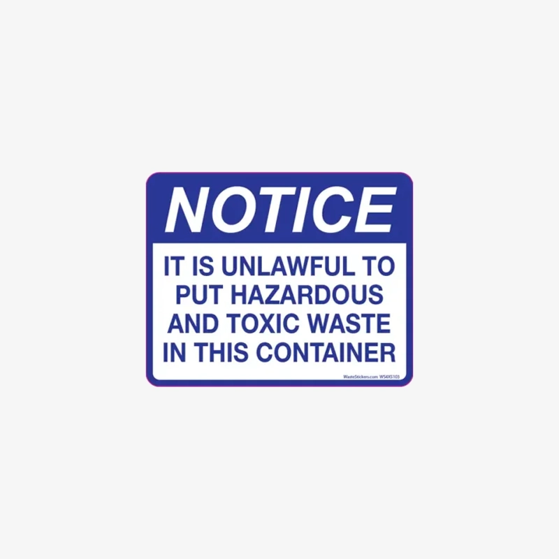 Notice, It is Unlawful to put Hazardous Materials in this container Decal
