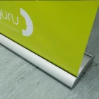 Premium wide pull-up banners come preinstalled in stands specifically designed for their larger size. These stands feature a silver aluminum finish and chrome end caps for a sleek, professional look.