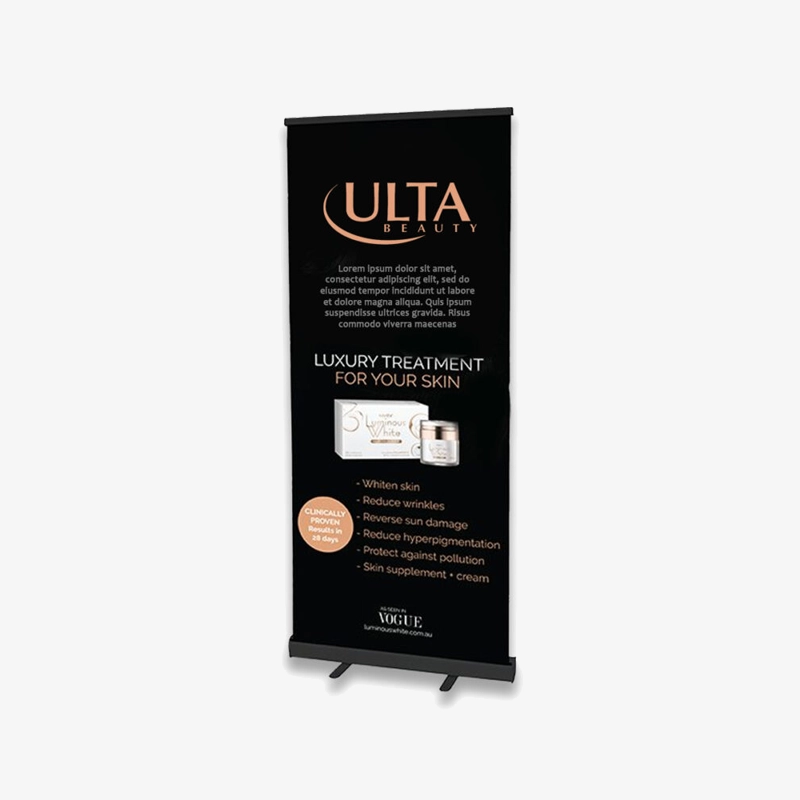 We print custom pull-up banners on our durable 13oz matte vinyl, which reduces glare from strong lighting, ensuring your customer’s message is always clear and visible.