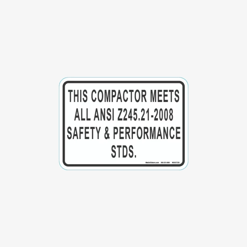 This Compactor Meets All Ansi Z245.21-2008 Safety & Performance STDS Decal.