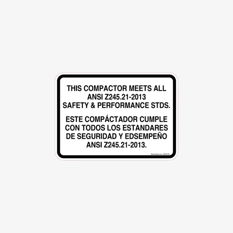 This Compactor Meets ANSI Z245.21-2013 Standards Decal Bilingual